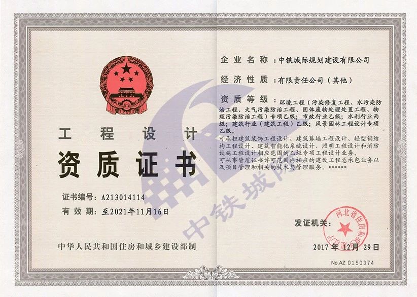 • 工程設(shè)計(jì)資質(zhì)證書