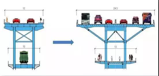 大修后,松浦大橋?qū)⑴f貌換新顏,上層拓寬成雙向6車道,橋面寬24.5米,不再承擔鐵路交通運營的下層,也將作為慢行交通過江專用通道。