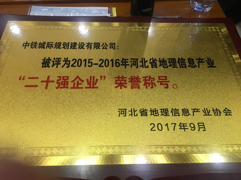 為表彰和獎勵2015--2016年度在全省地理信息生產和科技進步中做出突出成績的會員(企業(yè))單位,推進企業(yè)單位三個文明建設,根據《河北省地理信息產業(yè)二十強企業(yè)評選辦法》和《關于開展河北省地理信息產業(yè)二十強企業(yè)評選活動的通知》(冀地信協(xié)〔2017〕2號)精神,由具有企業(yè)測繪資質的單位申報,經河北省地理信息產業(yè)協(xié)會各市聯(lián)絡處審核,組織二十強企業(yè)評審專家評審,報省地理信息局同意,共評選出全省地理信息產業(yè)二十強企業(yè)20家,中鐵城際規(guī)劃建設有限公司榜上有名。