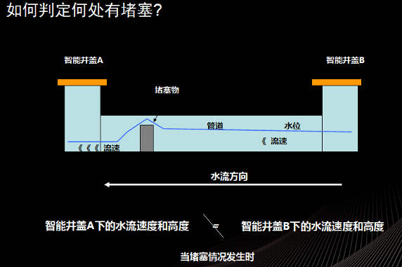 美國某城市采用了智能井蓋結合 IBM 的智慧城市平臺,提前應對強降雨天氣對市民的影響。該城市部署了 44 個智能井蓋,每 5 分鐘這些井蓋就往運營平臺發送一次數據,其中包括水位、水流速和水溫。同時,該系統還整合了氣象信息,城市管網拓撲信息,交通信息等。下圖說明了分析技術如何通過智能井蓋的信息分析管道的擁堵。