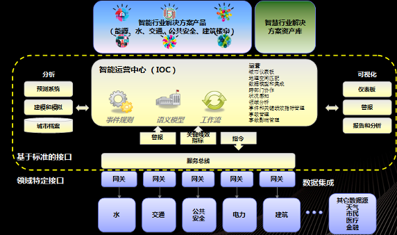 2011 年 6 月,IBM 發布了智慧運營中心(IOC)產品,同年 7 月發布了智慧運營中心云產品。IBM 的智能運營中心解決方案旨在方便高效地監管和協調智慧城市運營,通過將各種信息匯集在一起,提供給相關的人員快速而準確地作出決策并且跟蹤這些決策的效果的能力。