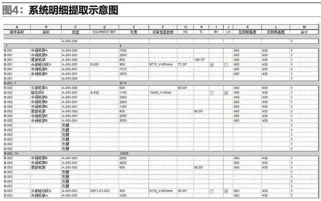 而在BIM技術(shù)軟件的應(yīng)用中,僅通過(guò)其中的一款Revit軟件便能減輕設(shè)計(jì)人員的工作量,且能快速提取設(shè)計(jì)所傳遞的相關(guān)信息,即在平面布局完成的同時(shí)便可提取相關(guān)零部件的參數(shù)及數(shù)量信息(如圖4),便于快速生產(chǎn)的組織;同時(shí),提高了各工程材料預(yù)算的準(zhǔn)確性,減少冗余采購(gòu)量,節(jié)省資金。