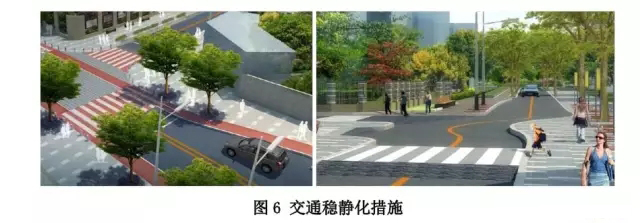 因此,在城市支路級別道路改造中,我們引入了城市交通穩(wěn)靜化(Traffic calming)理念,通過壓縮機動車道寬度、設(shè)置道路線型曲折化、縮小轉(zhuǎn)彎半徑以及路面鋪裝材料變化等措施,減少社區(qū)穿越性交通,實現(xiàn)對車速的管控,以保障居民出行及活動安全。