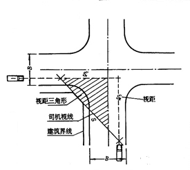兩條道路以銳角或鈍角斜交;當相交銳角較小時,形成狹長形交叉口,不利于交通組織(特別是左轉交通),街角建筑難以處理,應盡量避免這種形式。當斜交不可避免時其交角應>45度。為保證城市交通暢通,場地內道路與城市道路相接時其交角不宜小于75度。