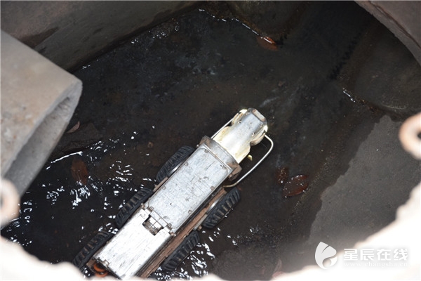 “這是我們的新幫手。”劉燕軍告訴星辰全媒體記者,下水井中充滿了有毒有害氣體,機器人下井確保了施工安全。通過人工遙控機器人,下水井中的工作界面能實時監控,人工操作時很難知道的管道變形、破裂、滲水等問題一目了然。