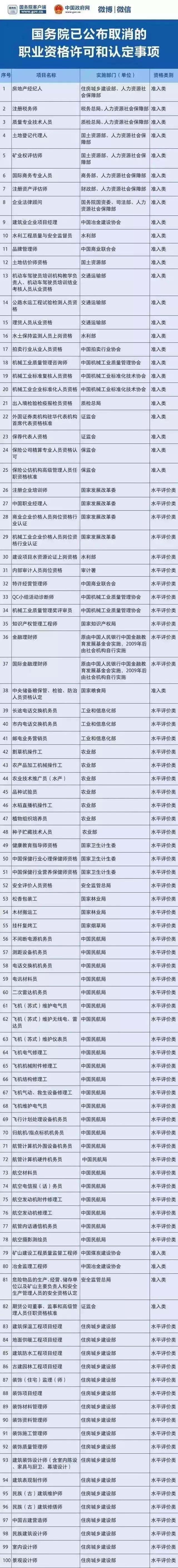 下面就是被國(guó)務(wù)院取消的資格認(rèn)定,大家看一看,以后千萬(wàn)別浪費(fèi)時(shí)間在這些證書的考取上面了: