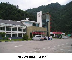 受占地空間的限制,服務區(qū)內(nèi)會最大程度地增加建筑面積和停車場面積,如服務區(qū)規(guī)劃設計充分利用原地貌、地物資源,結合周邊地理環(huán)境進行設計,這實際上將是對自然環(huán)境的開發(fā)和保護,如圖6所示西漢高速公路的秦嶺服務區(qū)即為一例。