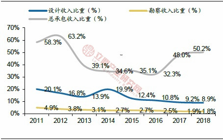 ——隨著總承包模式的推廣和PPP模式的快速推進,設計行業(yè)發(fā)展趨勢使工程總承包的收入比重提升。