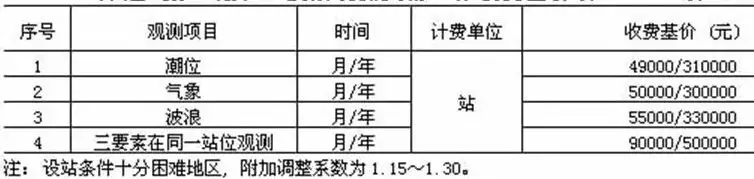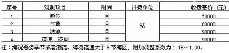 注:1.海況分級見《海濱觀測規(guī)范》;2.本表同時(shí)具備兩項(xiàng)及以上因素的,按照最高類別計(jì)算收費(fèi)。