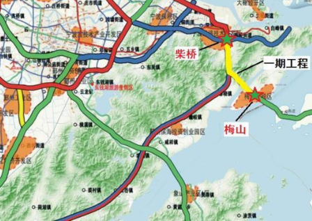 本工程分期實(shí)施,一期工程寧波梅山互通至柴橋樞紐段先行實(shí)施,力爭(zhēng)2020年開工建設(shè)。