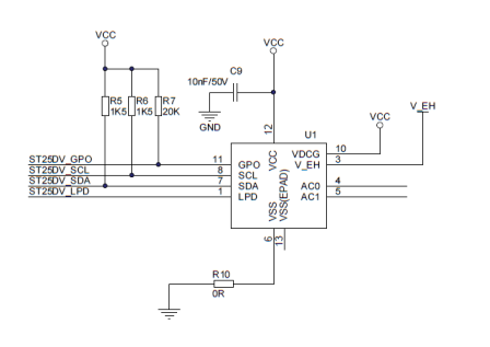 射頻閱讀器和識(shí)別器的核心在于RFID芯片。通常RFID芯片供電電壓1.8V-5.5V,帶有4K、16K或64K的E2PROM,通過片內(nèi)串行總線I2C或者射頻進(jìn)行數(shù)據(jù)傳輸。圖2為RFID芯片ST25的識(shí)別器電路原理圖。射頻識(shí)別芯片通過SCL和SDA和主控制器芯片完成通訊??刂破髟俸蜕衔粰C(jī)完成信息交換傳輸。
