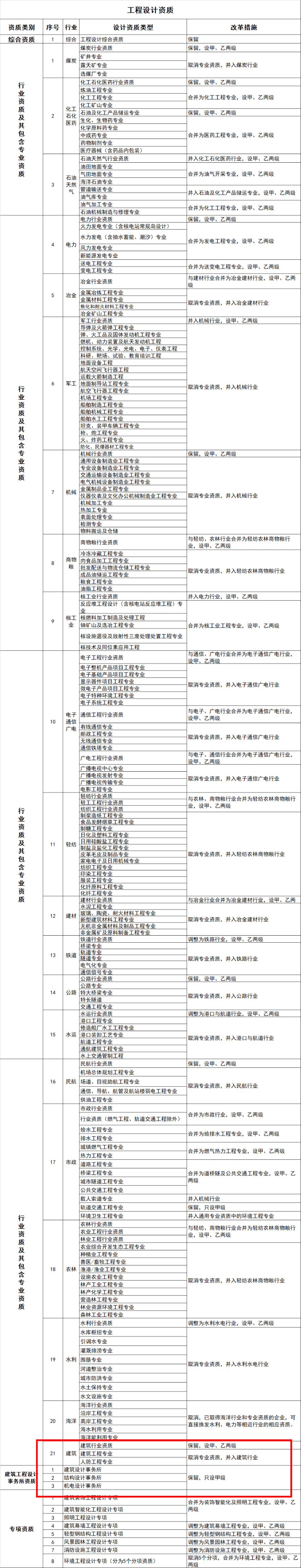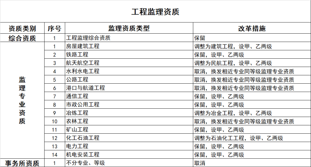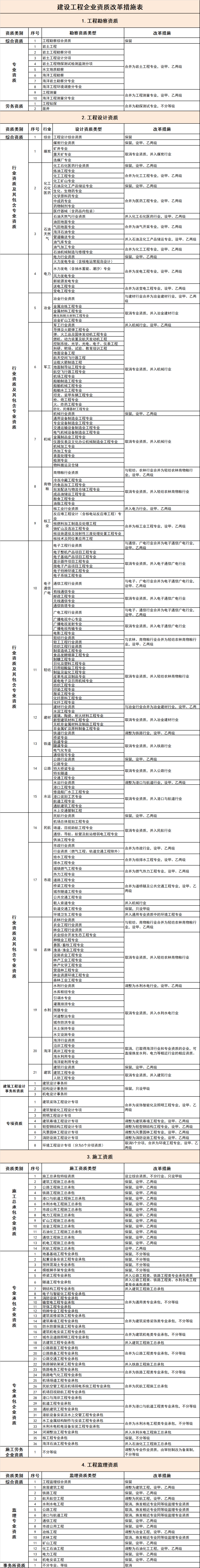 1、 建設工程企業(yè)資質改革措施表