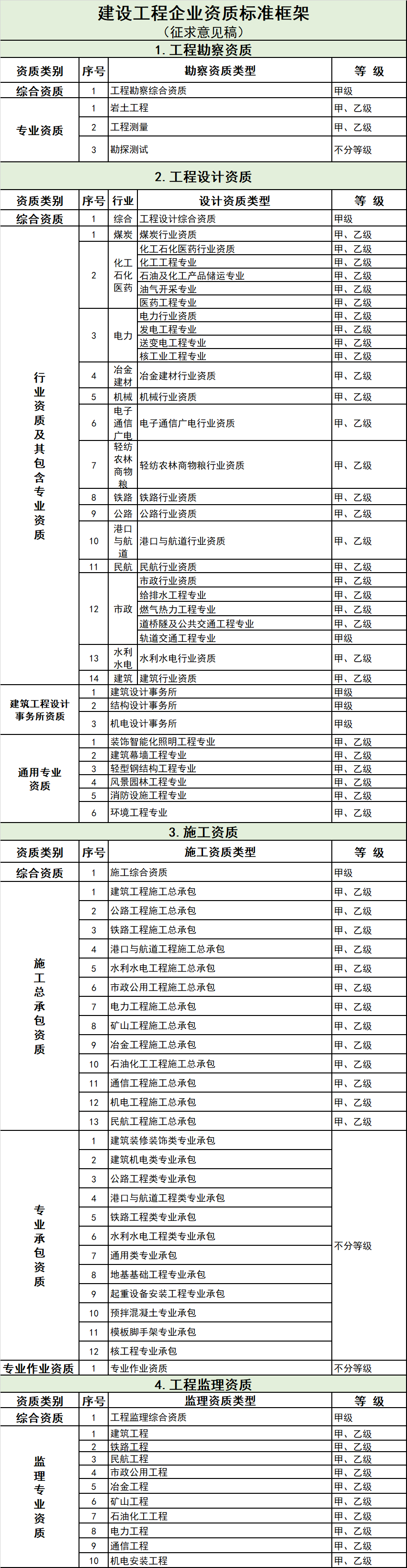 2、建設工程企業(yè)資質標準框架(征求意見稿)