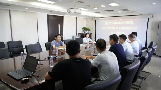 6月27日下午,廈門市第十一次(2022年度)島內(nèi)外地下管線修補(bǔ)測(cè)項(xiàng)目開工動(dòng)員會(huì)在建設(shè)大廈召開。市城建檔案館以及項(xiàng)目探測(cè)單位、監(jiān)理單位和數(shù)據(jù)建庫(kù)單位的分管領(lǐng)導(dǎo)和項(xiàng)目主要人員參加會(huì)議。
