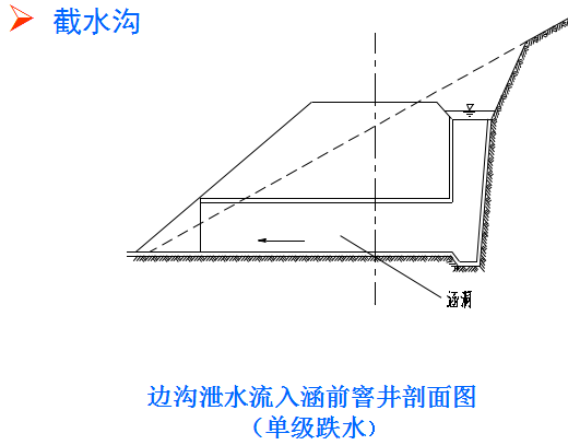 4.跌水與急流槽:跌水與急流槽是路基地面排水溝渠的特殊形, 用于陡坡地段,溝底縱坡可達45度。在陡坡或深溝地段設(shè)置的溝底為階梯,水流呈瀑布式跌落的溝槽稱作跌水。跌水的作用是在較短的距離內(nèi),降低水流流速,消減水流能量,進而防止沖刷(用于坡度大于10%,水頭高差大于1.0m的陡坡地段)