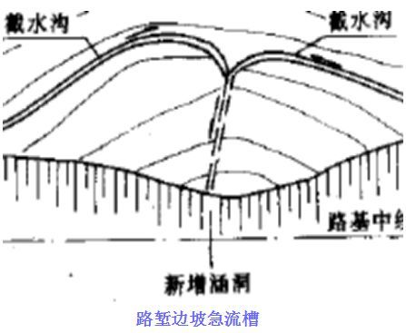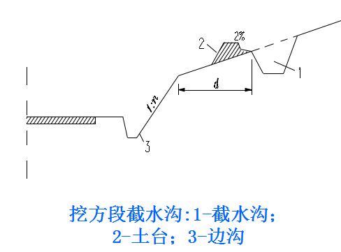 ③截水溝水流不應(yīng)引入邊溝,當(dāng)必須引入時,應(yīng)增大邊溝橫斷面,并進行保護;