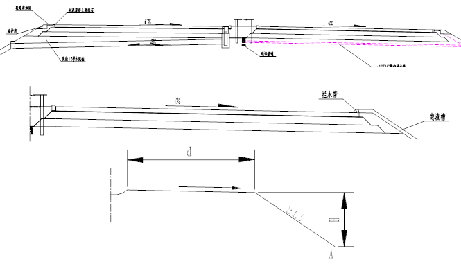 倒虹吸的設(shè)置往往是因路基橫跨原有溝渠,且溝渠水位高于路基設(shè)計標(biāo)高,不能按正常條件下設(shè)置涵洞,此時采用倒虹吸是可行的方案之一。 渡水槽的設(shè)置是因原水道與路基設(shè)計標(biāo)高相差較大,如果路基兩側(cè)地形有利,或當(dāng)?shù)卮_有必要,可設(shè)簡易橋梁,架設(shè)水槽或管道,從路基上部跨越,以勾通路基兩側(cè)的水流。