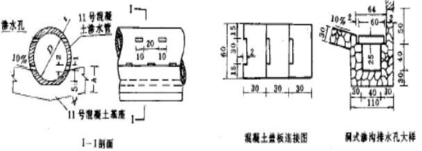 滲溝構(gòu)造:由排水層(石縫,管,洞),反濾層和封閉層所組成。封閉層:防止地面水的下滲(漿砌片石)。反濾層:匯集水流,防止水層中的土粒堵塞排水層,由大小均勻的砂石材料,分層填埋。
