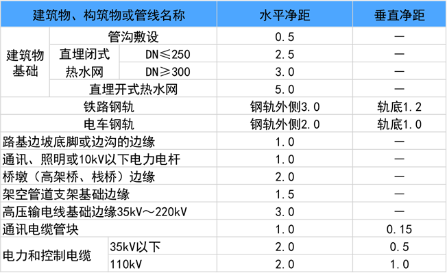 地下敷設熱網(wǎng)與建(構)筑物或其它管線距離