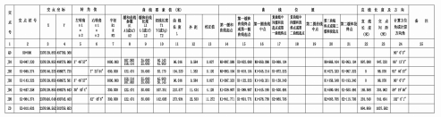 智城一路為避開K1+110處的民宅,采用了壓縮人行道、非機動車道及側綠化帶的方法,為避開K0+660處建筑物、K1+400~K1+900處茂名第一中學及茂名職業技術學院圍墻、K2+380~K2+580處村莊、K3+500~K3+800處村莊、K4+200~K4+300處村莊、接順K4+930處現狀新湖路及終點處325國道預留路口位置,共設置了7個轉點,具體的平曲線參數如下表所示:
